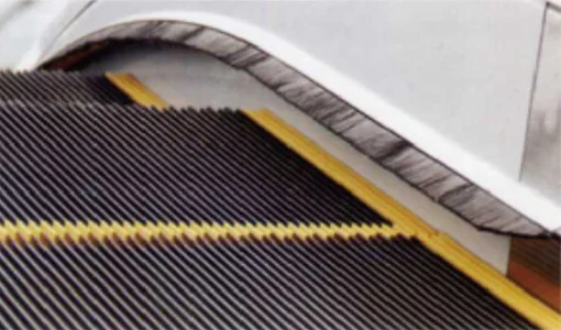 The skirt board brushes, mounted on both sides of the skirt boards and located above the steps, can not only avoid the passengers' shoes to collide on the skirt boards but also effectively avoid the entry of foreign objects into the steps.