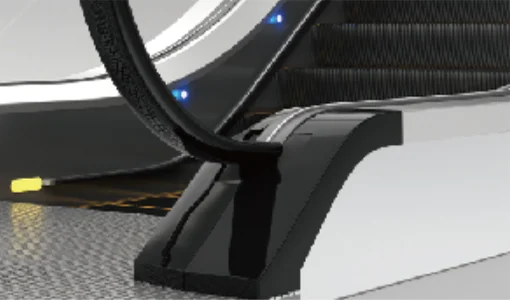 The escalator is richly endowed with the intelligence and popularity by the novel, distinctive, elegant, tensile and modernized streamline handrail inlet and outlet design model. It appears to be more beautiful in the outer appearance. It displays the nobleness and imposing manner of the conveying constructions.