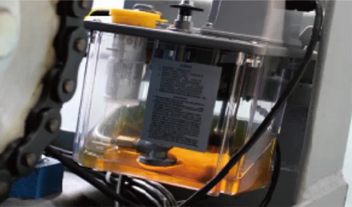 PLC control automatic oiling and lubricating system fulfills the ideal automatic lubrication to the transmission chain during the running process of the escalator. It not only reduces the daily repair and maintenance word load, but also prolongs the service life of the driving mechanism.