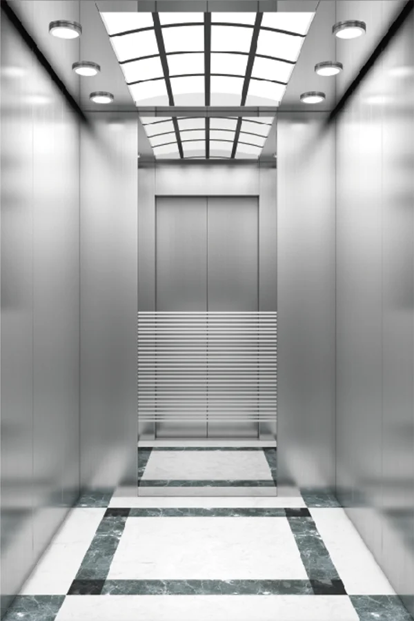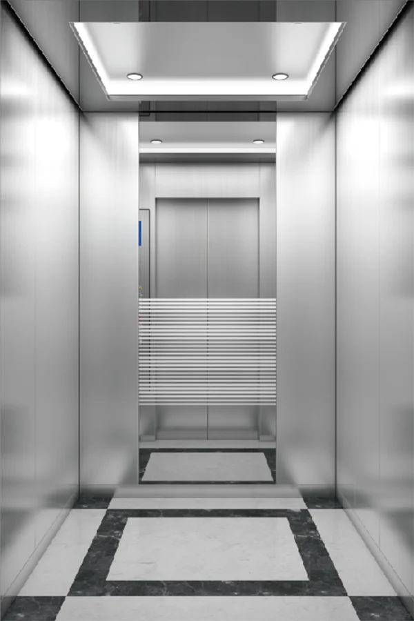 • Car wall: Stainless steel hairline on both sides, combination of stainless steel hairline and etched mirror at rear wall