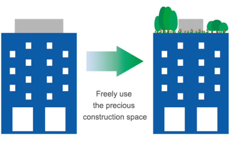 We cancel the machine room to freely design the shaft position. We can flexibly and effectively apply the top space that is preset for machine room.